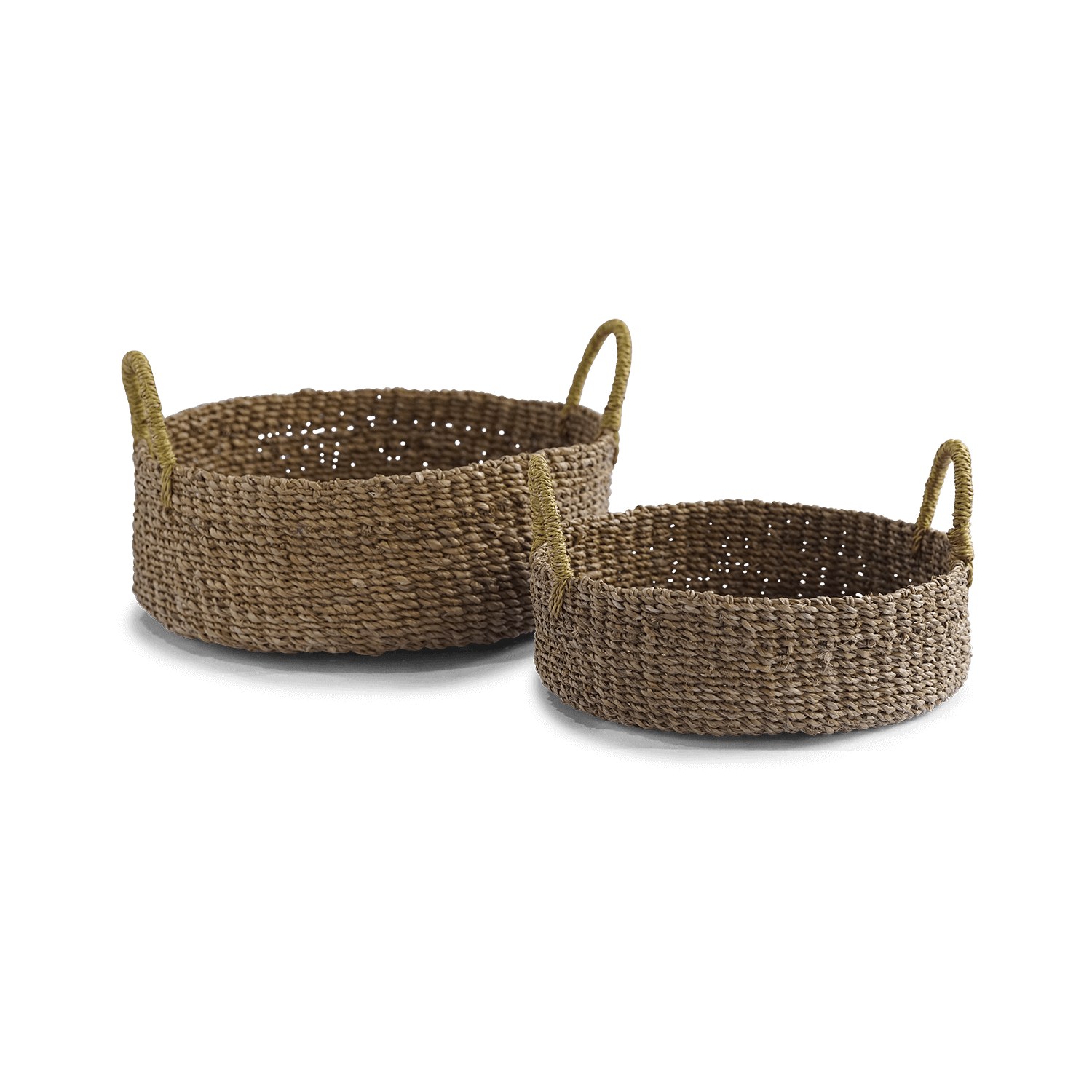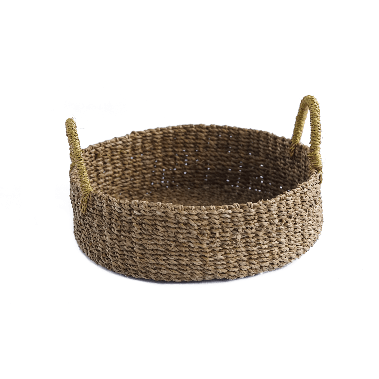 Meet the beautiful Sofia round multi-purpose basket, boasting a hand-dyed mustard colour on both handles. These woven baskets are an exquisite addition to any dining room or kitchen table. With other woven tableware available, these baskets make stunning fruit bowls and bread baskets – and look fabulous matched with coasters, placemats and table runners. Made of seagrass and come in two sizes.
